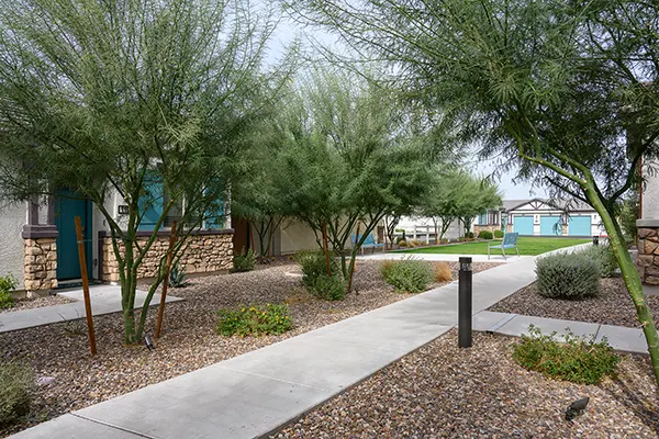 Step into a life of comfort, convenience, and luxury at Village at Pioneer Park—an inviting neighborhood of one-, two-, and three-bedroom single-family homes for rent in Peoria, Arizona. Here, you’ll discover a thoughtfully planned community that redefines modern living. From exclusive amenities like smart home technology, private backyards, and onsite dog parks, to indulgences such as a sparkling swimming pool, soothing spa, resident clubhouse, and fully equipped fitness center, our community offers everything you need for a refined lifestyle.